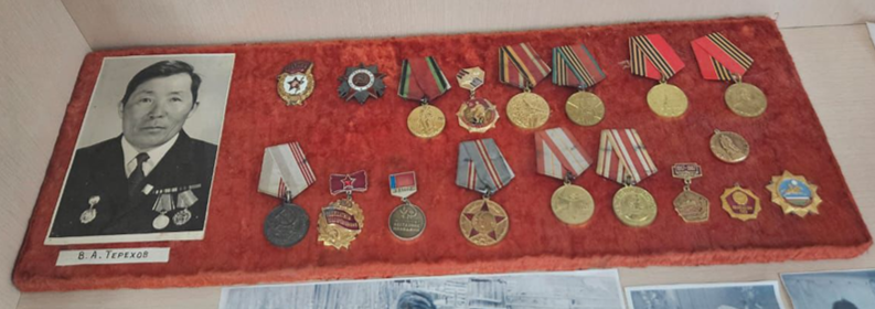 У прапрадеда было четверо детей: сыновья Василий и Иннокентий и дочери Ольга и Евдокия. Мой прадед, Василий Афанасьевич Терехов, участник Великой Отечественной войны, родился здесь же, в Кобяе, в местности Умсаннаах. Окончив в 1942 году курсы ветеринаров, он был призван на фронт прямо во время работы — делал прививки скоту против сибирской язвы. Воевал он в составе 2-го сапёрного полка Второго Белорусского фронта, пройдя путь от кочегара паровоза до машиниста и доехав на своём локомотиве до самого Берлина.