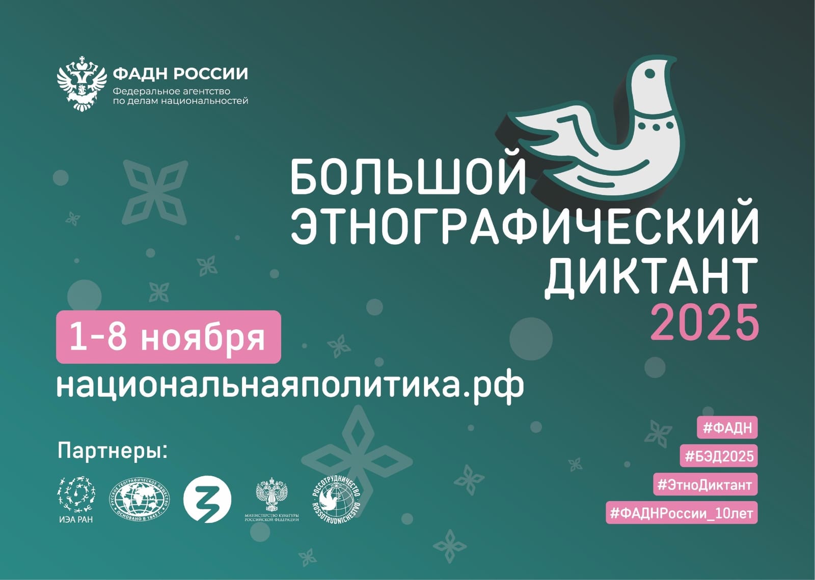 С 1 по 8 ноября 2025 года Федеральное агентство по делам национальностей проводит X Всероссийскую просветительскую акцию «Большой этнографический диктант».