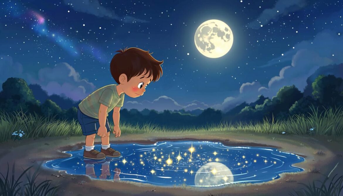 Уйбаан ону көрө-көрө хааман испит. Ол иһэн иҥнэн чалбахха умса баран түспүт. Арай көрбүтэ чалбахха ый төгүрүйэ сытар эбит. Хайдах хайдаҕый диэн уол наһаа дьиктиргээбит. Онтон ыйбыт үөһээ турар этэ дии, хайдах үөһэттэн түспүтэй дии санаабыт. Дьиэтигэр кэлэн ийэтигэр: «Мин ыйтан иҥнэн оҕуттум» -, диэбит. Ийэтэ күлбүт уонна эппит: «Тоойуом, оскуолаҕа киирдэххинэ айылҕа уроугар ый туһунан элбэҕи билиэҕиҥ».
