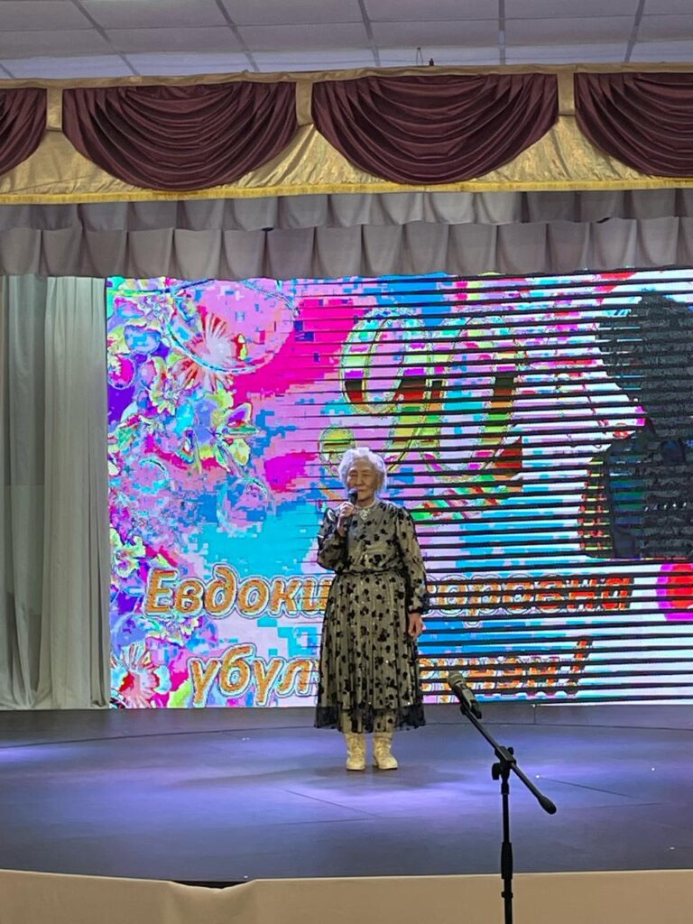 Евдокия Егоровна «Көлүкэчээн» эбээлэр ансаамбылларыгар 20-тан тахса сыл устата ыллаан-туойан кэллэ. Бу күн тапталлаах «Көлүкэчээннэрэ» ытык киһилэригэр эҕэрдэлэрин, ырыаларын-тойуктарын анаатылар. Салгыы бэйэлэрин эҕэрдэлэрин култуура киинин дириэктэрэ Анжелика Александровна Иванова, «Далбар» ырыа ансаамбыла, кини салайааччыта Наталья Николаевна Константинова тиэртилэр.